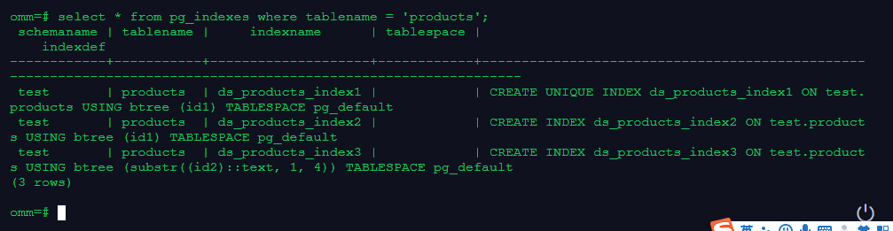 select * from pg_indexes where tablename = 'products';