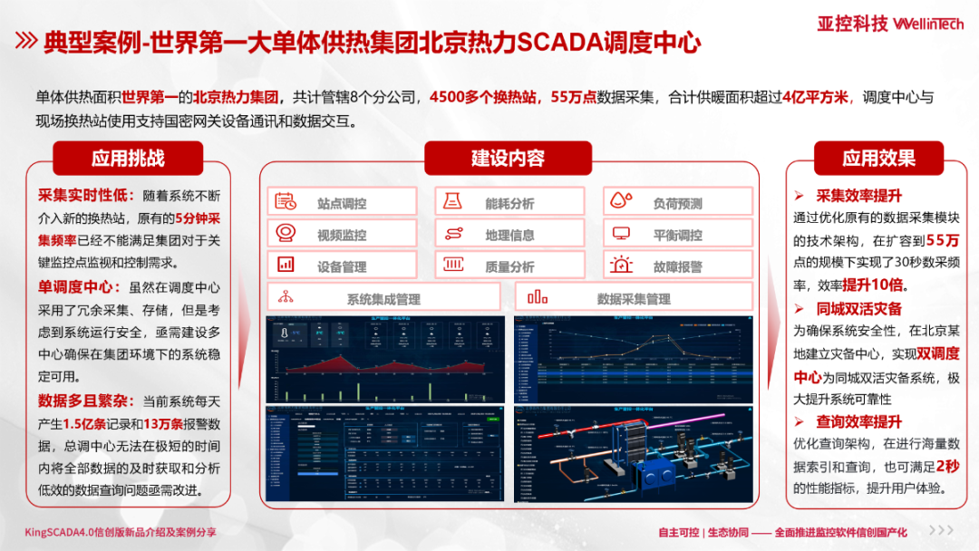 北京热力集团集控平台:覆盖4500+换热站,55万点数据的高效监控,同城双活灾备设计提升系统稳定性。