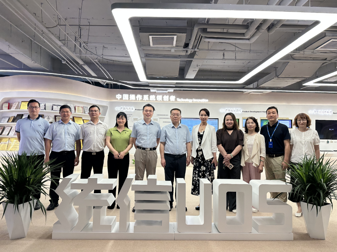 南宁市领导一行先后参观了信息技术应用创新成果展示中心和统信软件品牌展厅,了解了信创产业的发展历程与战略意义,重点考察了统信软件在操作系统研发、行业解决方案创新及产业生态建设等方面取得的最新成果。通过现场演示和案例讲解,南宁市领导一行深入了解了统信 UOS 在党政、金融、教育等重点领域的规模化应用成效。