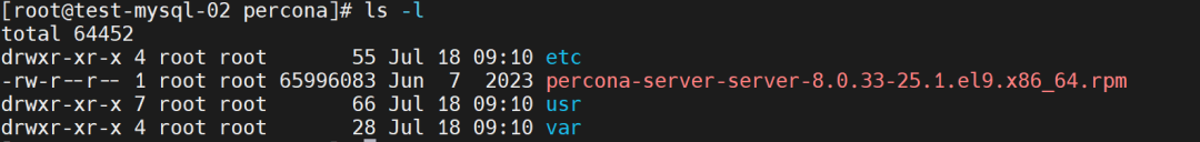 rpm2cpio percona-server-server-80-8.0.36-28.1.el8.x86_64.rpm | cpio -idmv