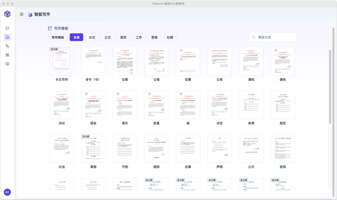 在智能长文写作方面,Fabarta个人专属智能体内置海量专业写作模板,可轻松匹配不同的专业写作场景,自动产出贴合主题版式和风格的文稿。结合个人本地知识库内容与线上的有效关联内容,既能记住用户专业领域的知识经验和行文规范,灵活调整提纲以达成专业度要求,同时能恰当地补充高度关联的专业信息和数据内容,写出专业领域的好文章,成为您专属的写作助手。