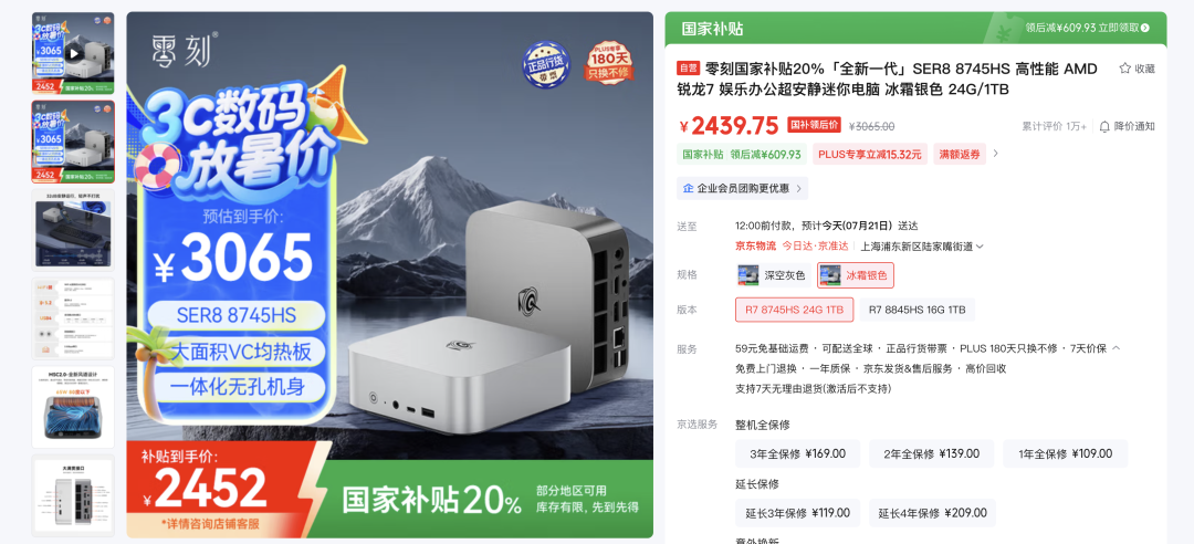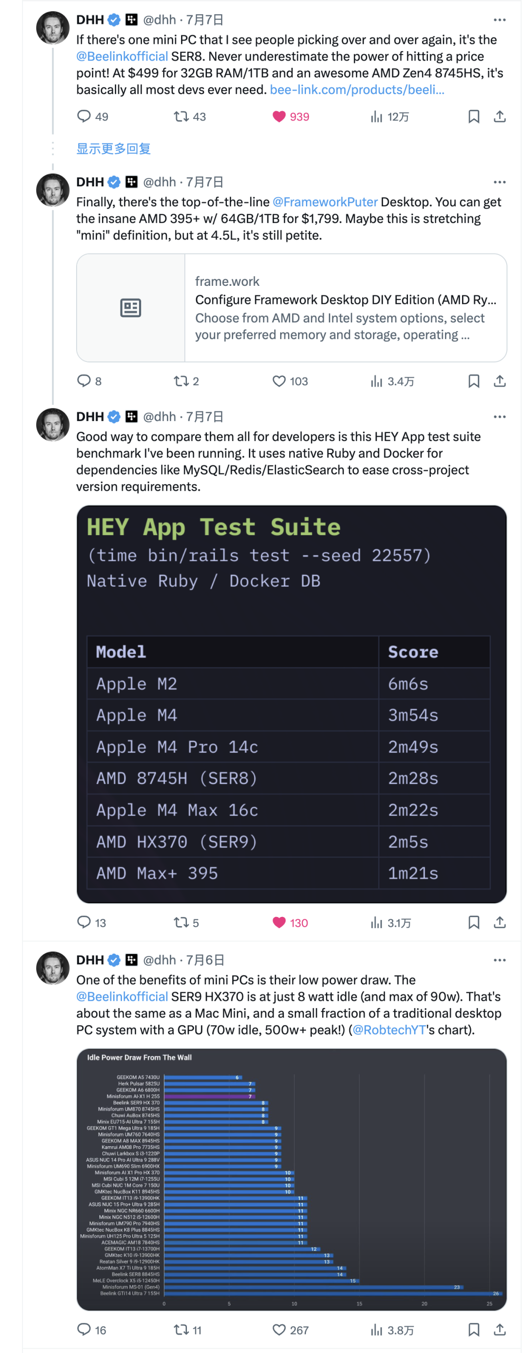 当然,最开始我看的是 AMD Mini PC,主要是被 DHH 种草了,他推荐的是零氪的 SER8 ,这个是一个挺不错的 AMD PC,价格挺便宜。性能可不赖。