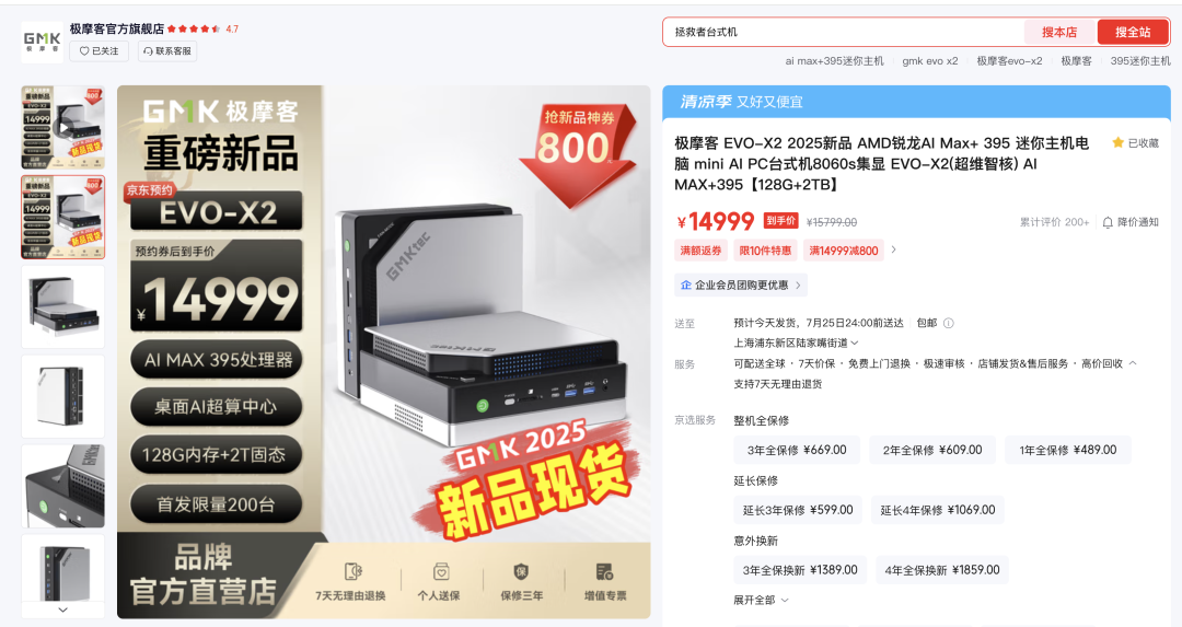 然后老冯就开始了调研,在 2025 年 7 月的当下,如果我想要找一台 AMD x86 电脑,可以跑个十几台虚拟机,最好能扩展个显卡跑点本地 AI 小应用。于是果断锁定了 AMD 刚发布的 AI MAX 395+ 芯片,这个芯片有 16核32线程。
