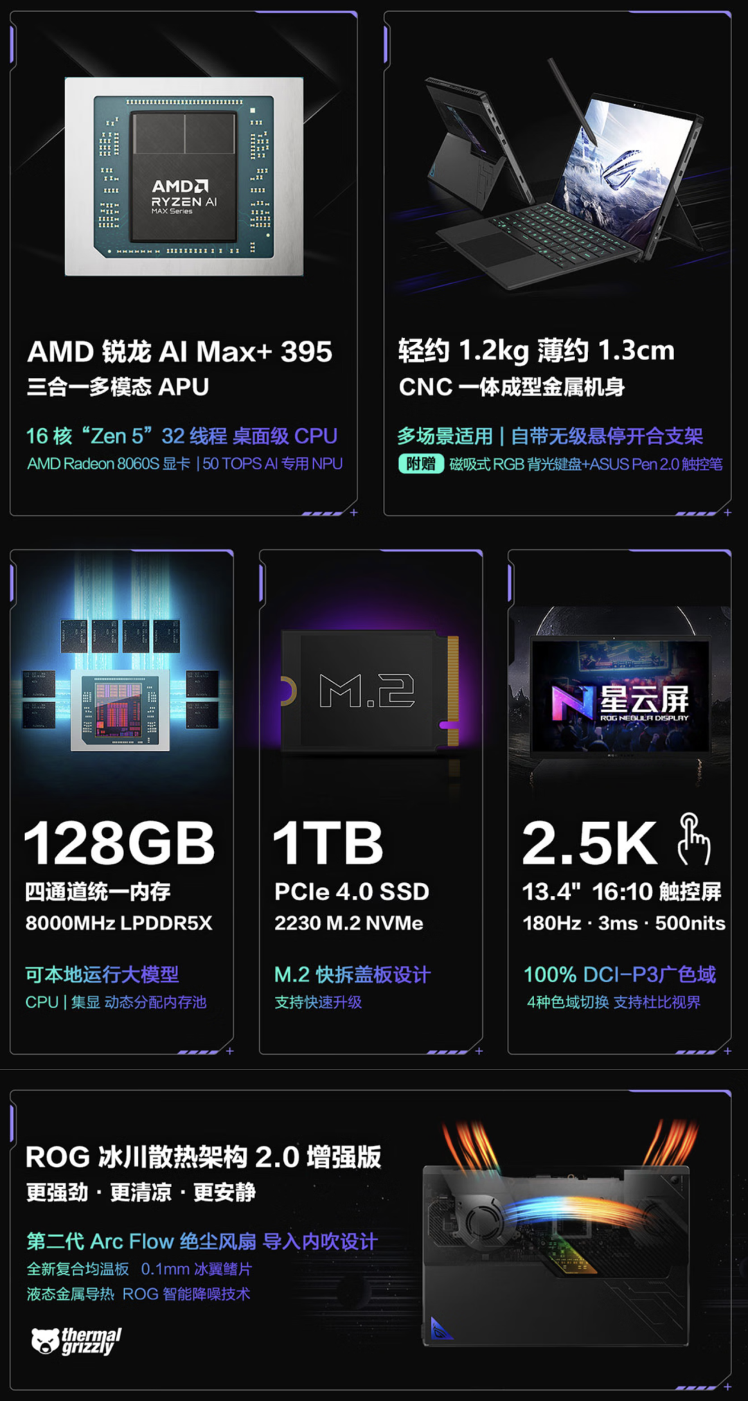 锁定了 CPU 内存之后,可选的范围就小了很多。我第一眼看上的是极磨客 EVO-X2,这是一台 AMD Mini PC。不过这个价格 15000,感觉溢价高了 —— 要是这个价格,我干嘛不买一个同 CPU 内存配置的 ROG 幻 X 2025?1.2 Kg,平板形态,带一块触摸屏,可拆卸键盘保护套。
