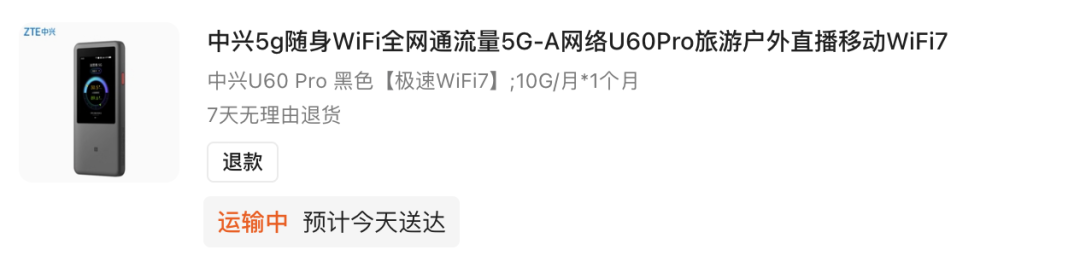 当然还有一个中兴的 U60P 5G-A 随身 Wifi 7 ,准备出门的时候提供 Wifi 用。