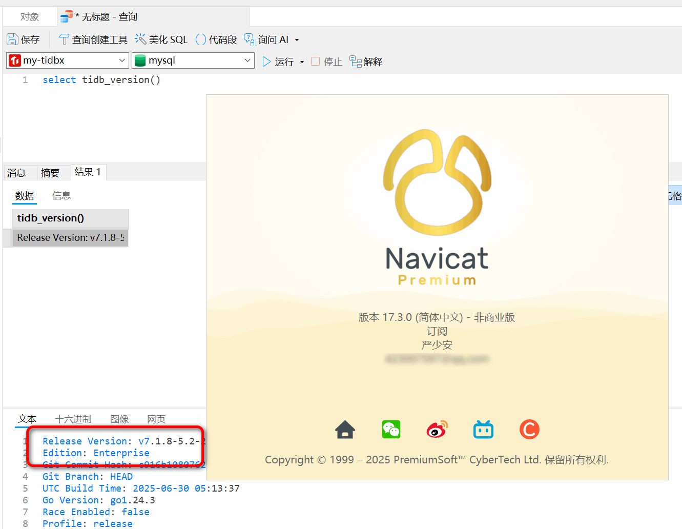 去年 11 月,Navicat Premium 17.1 正式支持 TiDB,包括本地部署版本(On-Premise),TiDB Cloud Dedicated 以及 TiDB Cloud Serverless,支持 Windows、Linux 和 MacOS 系统。我当时第一时间尝鲜,还分享了一篇文章:TiDB生态新伙伴:Navicat正式支持TiDB