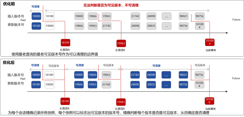 金仓优化了MVCC机制,保持ROW式MVCC的读写互不阻塞、免拷贝瞬时回滚等特色的同时,将表膨胀率降低了80%;