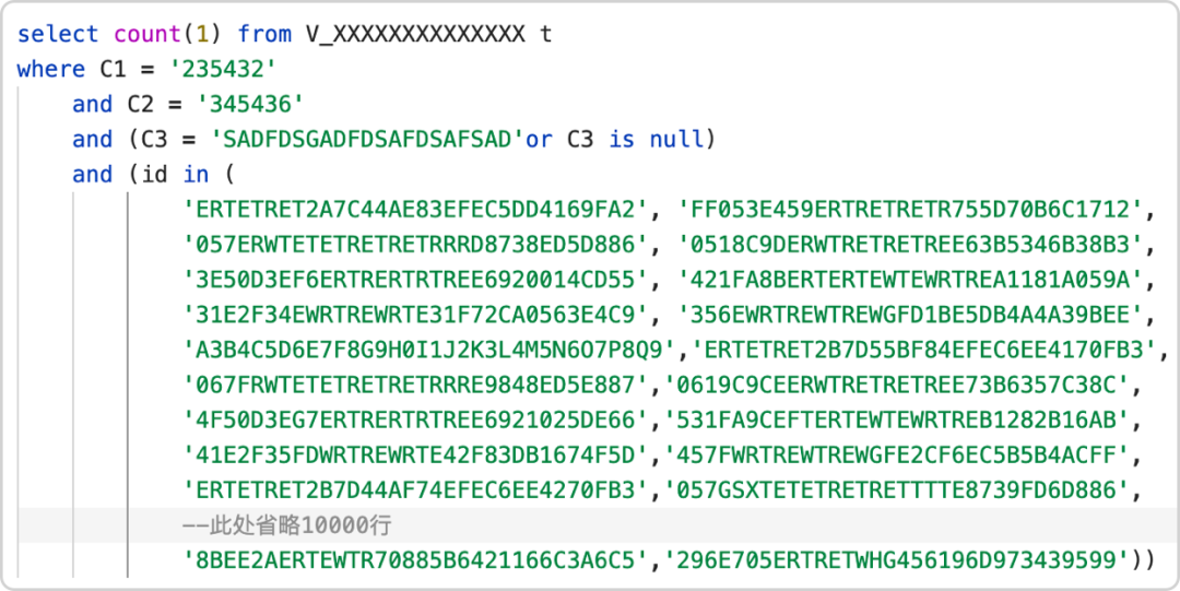 例如在应用系统中常见的问题:IN 列表超长导致的性能瓶颈。