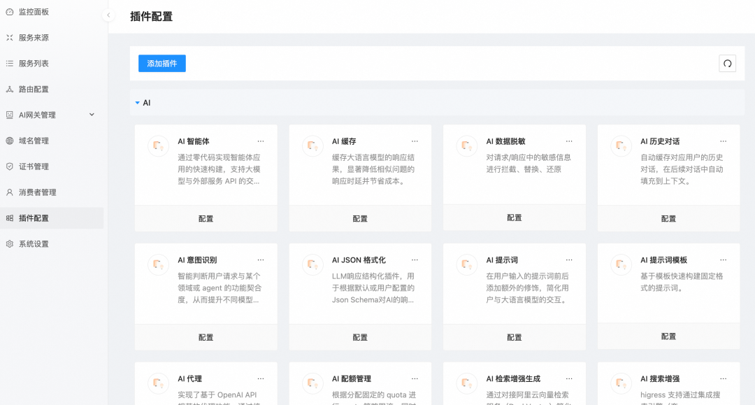 容器和微服务网关:提供从集群入口流量到后端微服务的管理,包括路由转发、安全认证、协议转化,并结合微服务治理能力提供全链路灰度、限流降级保障链路稳定。 大模型网关:统一代理各主流大模型和自建大模型服务,提供 OpenAI兼容的访问方式,并提供二次 API KEY 签发、限流、安全防护、观测等治理能力 。 MCP 网关:支持 API-to-MCP 快速转化,并提供 MCP Server 代理、安全认证,以及统一观测、限流等治理能力。