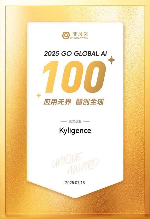 7月18日,在由非凡产研主办的2025年度生成式 AI 全球化高峰论坛暨「Go Global AI 100」年度评选中,Kyligence 凭借在数据与人工智能领域的持续技术创新和卓越的商业落地能力,成功入选该榜单,成为全球 AI 先锋企业。
