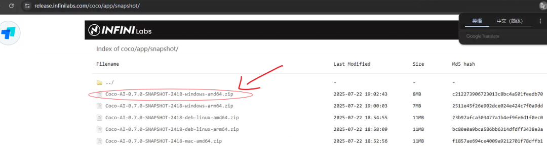 服务端地址:https://release.infinilabs.com/coco/server/snapshot/
