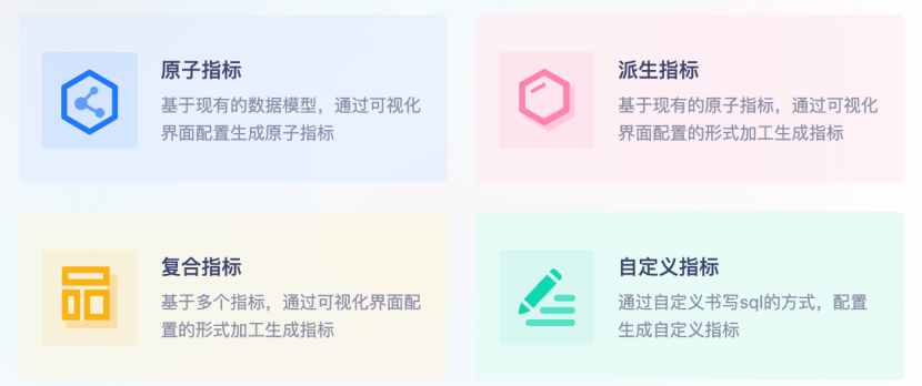 指标中心层是架构的核心基础,它承担着指标全生命周期的管理与治理工作。该层的最大价值,在于将企业零散、重复、模糊的指标数据资产转化为结构化、可复用、可治理的“指标资产”,是企业实现“指标即服务”的前提条件。