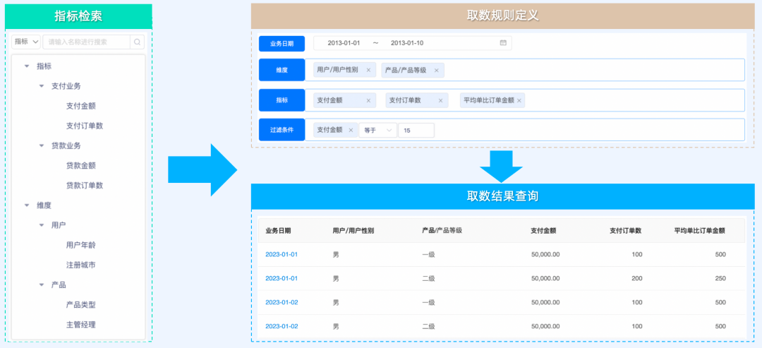 基于指标的灵活的自助取数