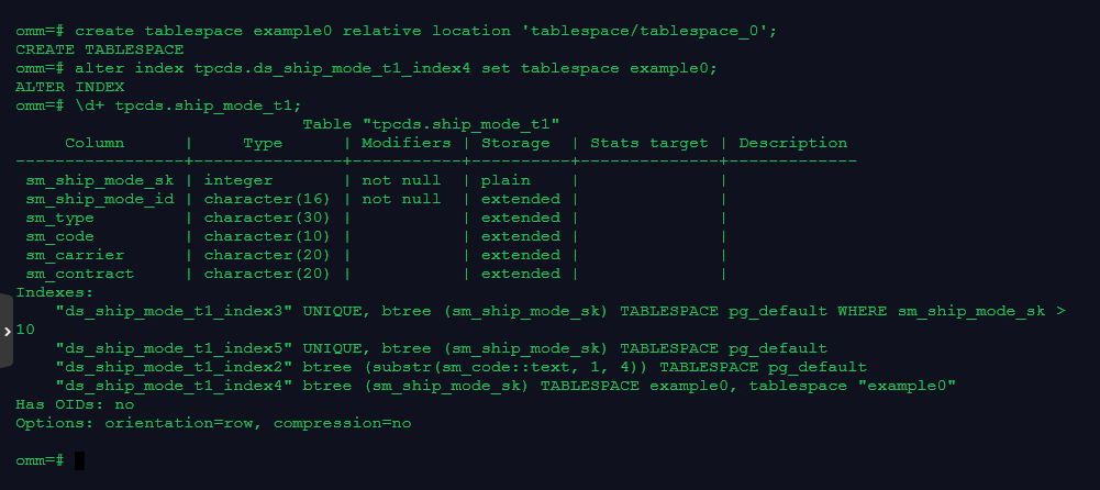 create tablespace example1 relative location 'tablespace1/tablespace_1';