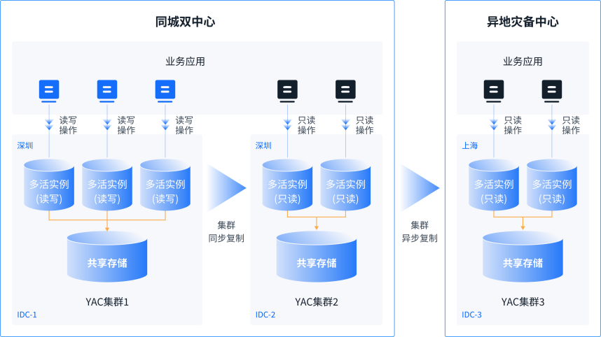共享集群两地三中心,全域容灾守护安全: 为满足跨区域协同办案与突发应急需求,YashanDB共享集群主备架构创新实现“同城读写分离、异地容灾”的两地三中心部署。该方案提供集群级、机房级、区域级全维度容灾能力,确保节点故障业务无感,为政法核心数据构筑高等级安全屏障。