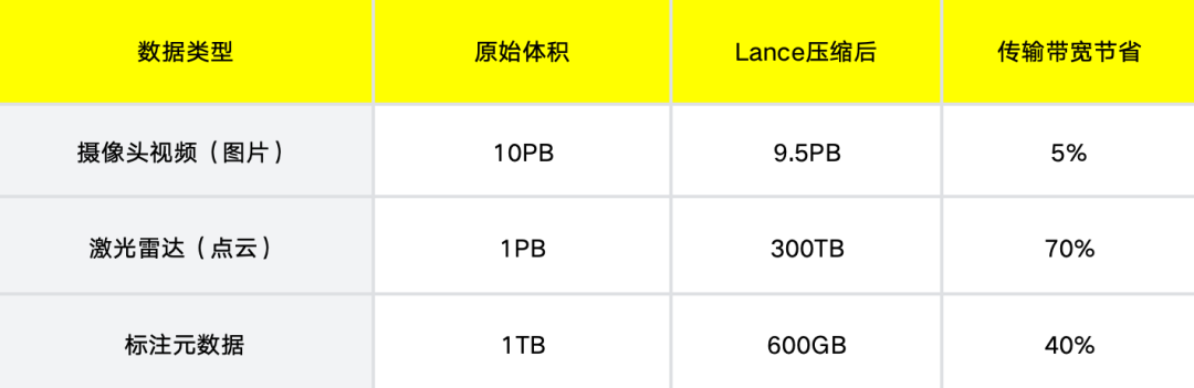Lance 支持ZSTD压缩编码,对点云和标签数据具有较高的压缩比,能够很好的实现压缩存储空间占用同时还能够降低网络带宽。
