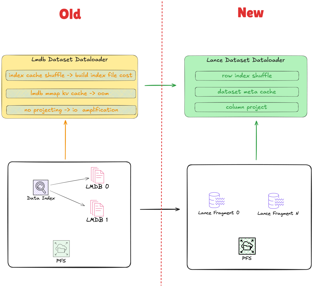 1. 客户痛点:客户原先使用 LMDB 存储格式,每次增加推理标注列时需读取和重写全量数据集,导致数据重复和存储膨胀,GPU 资源浪费严重。