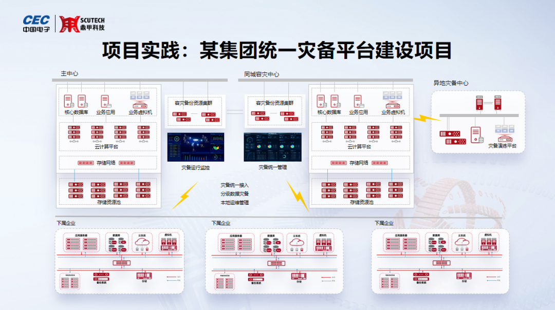 鼎甲特别介绍了为某军工集团构建的 “ 1-3-8 ” 一体化智能灾备体系: