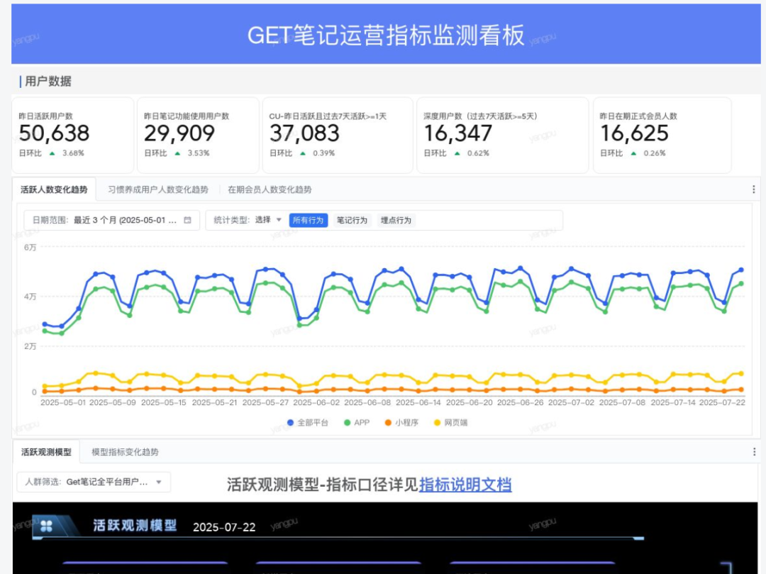 我刚才简单的介绍了一下 Get 笔记的人员情况,现在我把 Get 笔记的核心产品数据公开一下。要知道上周还有付费调研团队,要一个小时 3 千块钱找我们团队的小伙伴刺探产品数据军情呢,这里我全放出来。