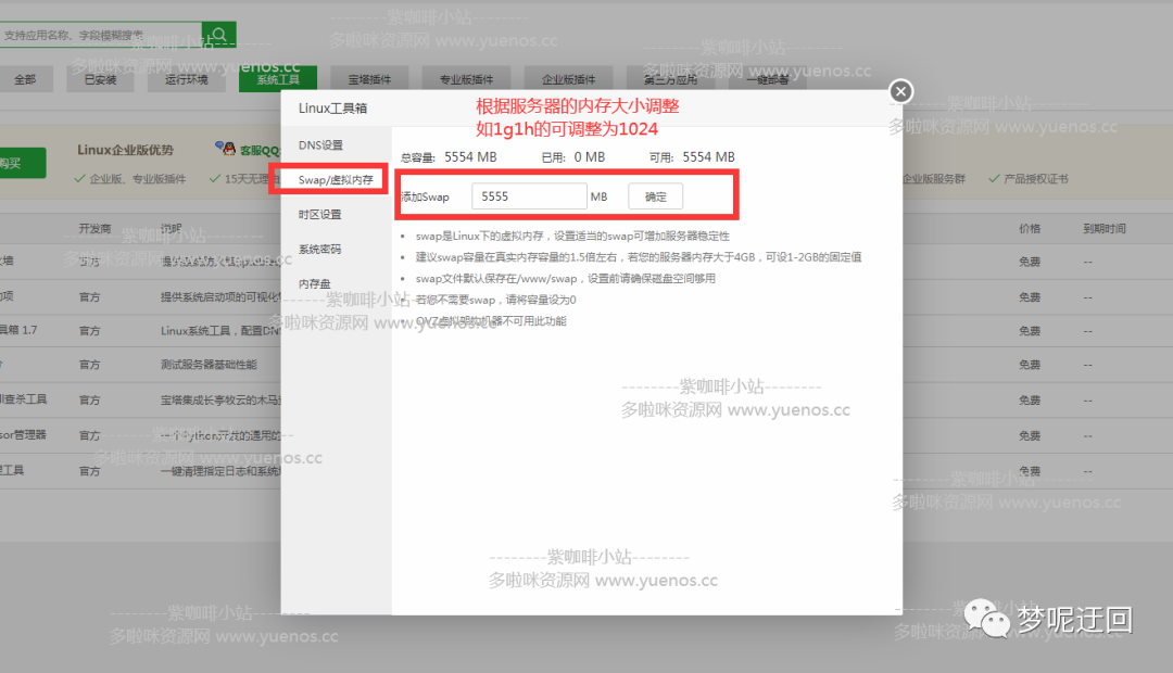 Linux工具箱。添加设置swap,添加设置SWAP大小,根据你的实际内存进行调整,swap是Linux下的虚拟内存,设置适当的swap可增加服务器稳定性,建议swap容量在真实内存容量的1.5倍左右,若您的服务器内存大于4GB,可设1-2GB的固定值,swap文件默认保存在/www/swap,设置前请确保磁盘空间够用。