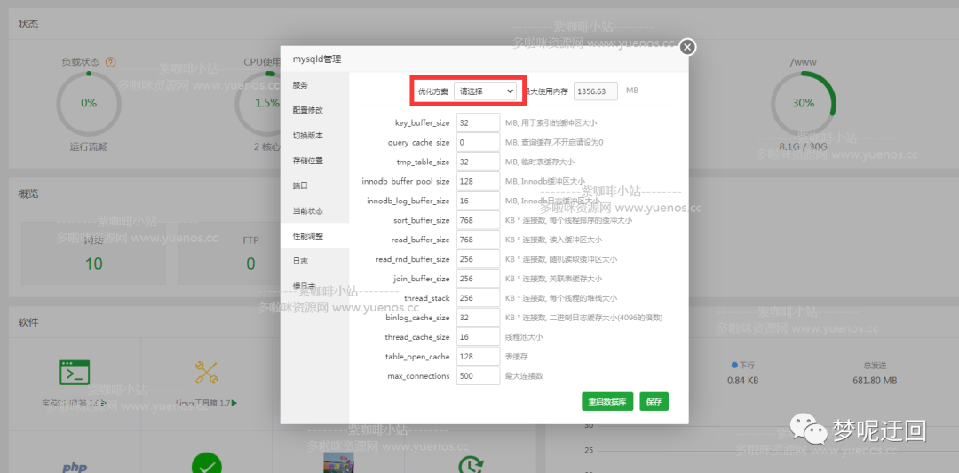 方法三:根据你的实际内存进行mysql优化