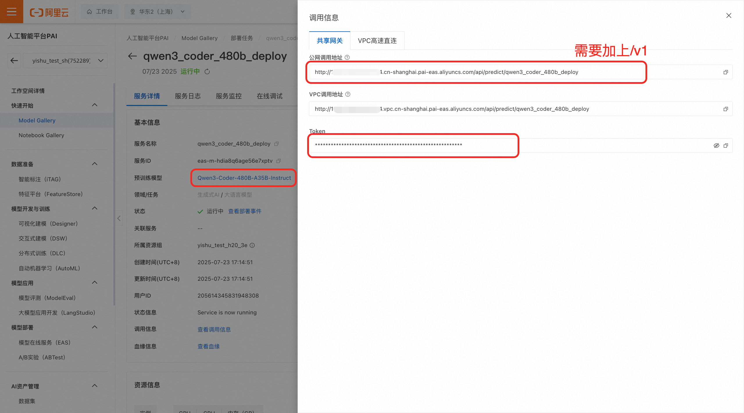 第二步:配置云上部署的 Qwen3-Coder 模型服务
