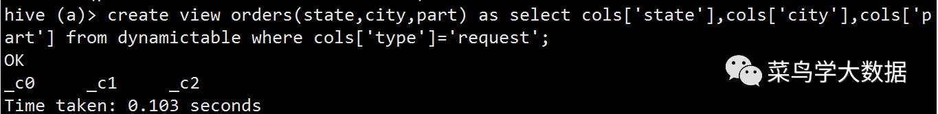 当一个查询引用一个视图时,这个视图所定义的查询语句将和用户的查询语句组合在一起,然后供Hive指定查询计划。从逻辑上讲,可以想象为Hive先执行这个视图,然后使用这个结果进行余下后续的查询。