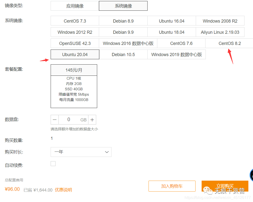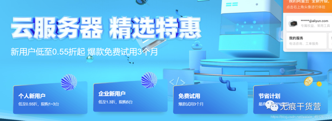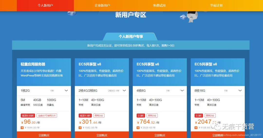 普通新用户的话点击下面链接,如果是个人博客网站,1核2G也算够用了,一年才100不到。