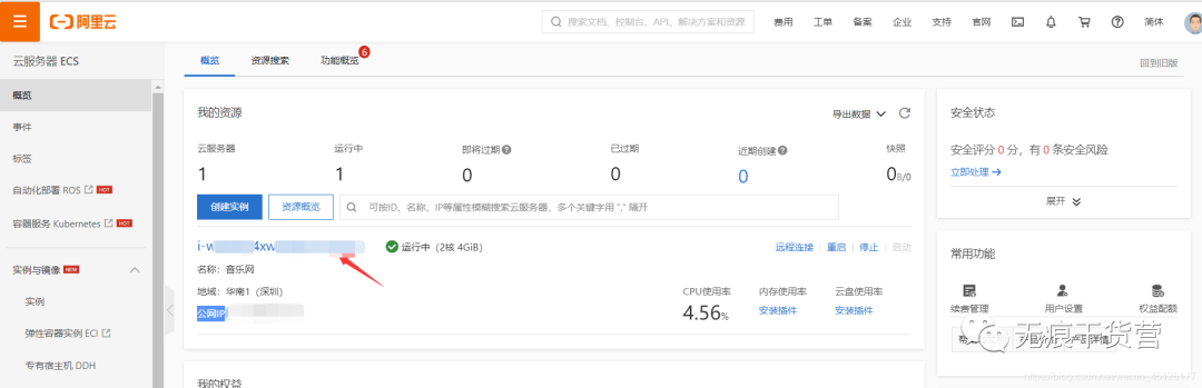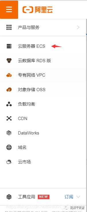 购买后进入控制台,点左边的菜单图标,选择云服务器ECS