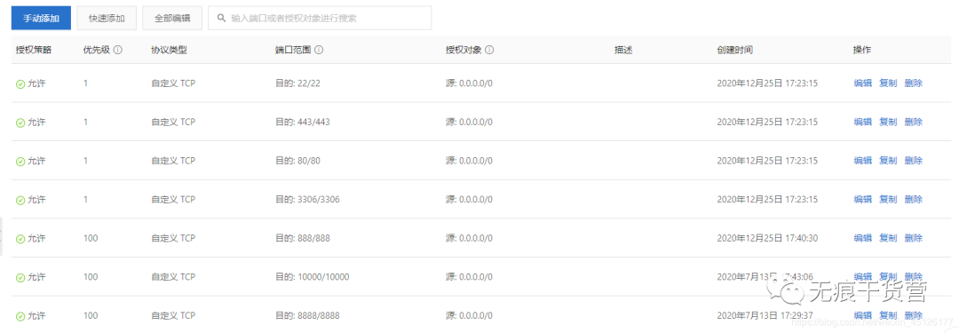 22 (SSH) 80、443(网站及SSL) 3306 (数据库远程连接) 888 (phpmyadmin)