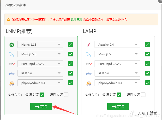 根据推荐安装网站环境,等待安装完成后,网站环境就能搭建好了。