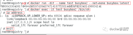 docker run -dit --name=test_busybox1--net=none busybox:latest