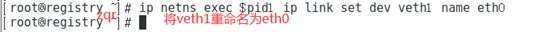 ip netns exec$pid2 ip link set dev veth3 name eth0,将veth3重命名为eth0