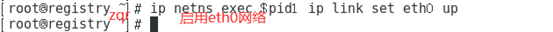 ip netns exec$pid2 ip link set eth0 up,启用eth0