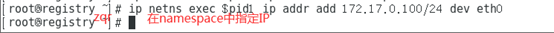 ip netns exec $pid1 ip addr add172.17.0.100/24 dev eth0