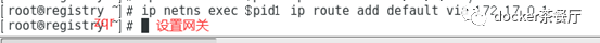 ip netns exec$pid2 ip route add default via 172.17.0.1,设置网关