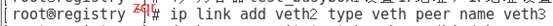 ip link add veth2 type veth peer name veth3,添加一个veth2对,指定veth0的对端是veth3