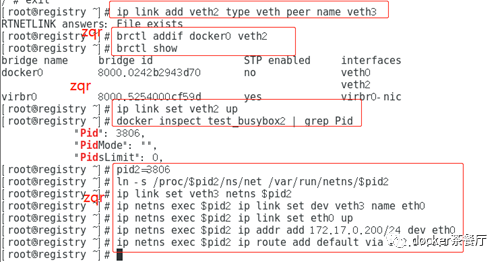 ip link setveth3 netns $pid2,将veth3连接容器busybox2网络