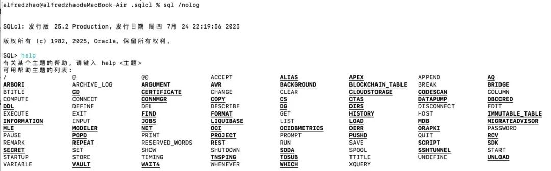 SQLcl:发行版 25.2.0.0 Production 工作版本:25.2.0.184.2054