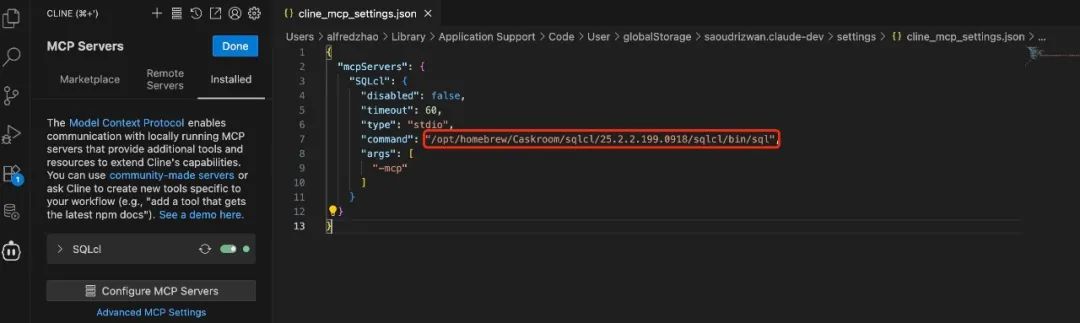 如何配置好SQLcl的路径,注意因为我这里升级过SQLcl版本,需要重新修改: