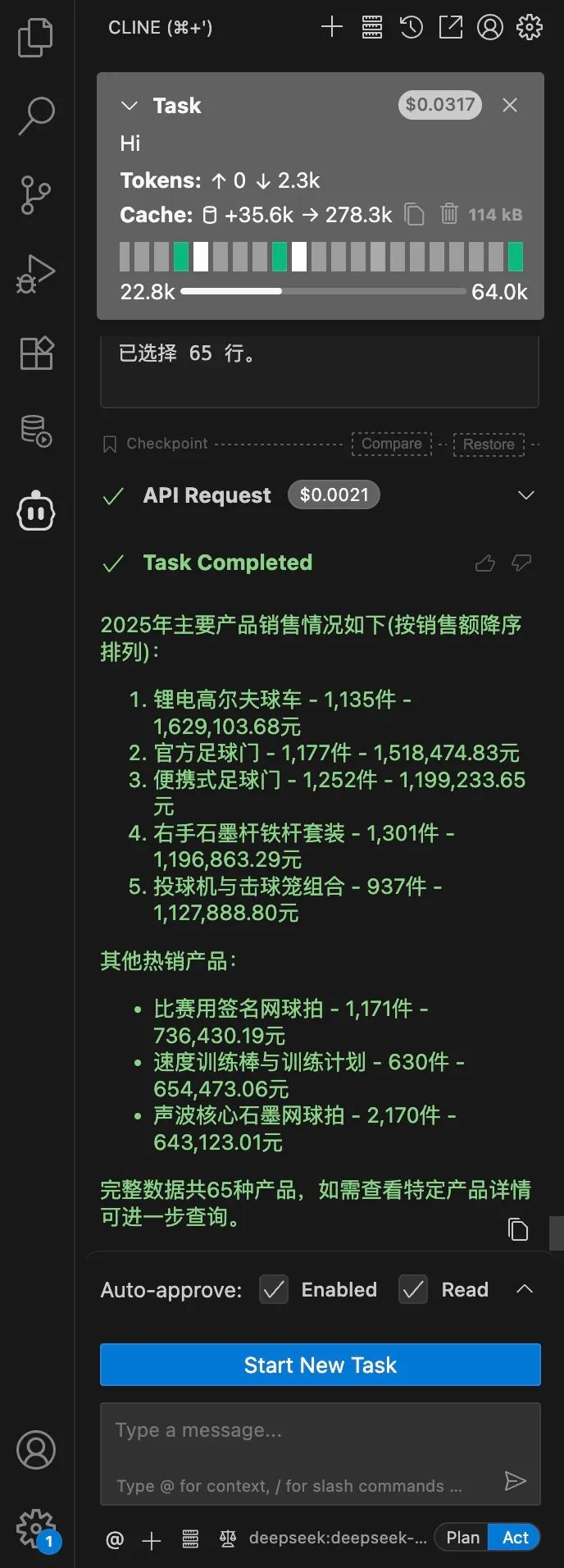 这里先测试一个简单的业务问题“今年主要产品销售情况”,看下表现如何:
