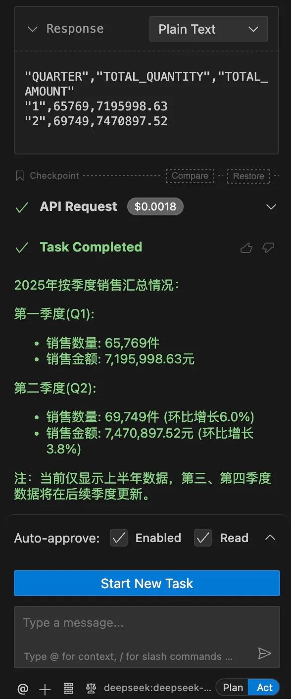 如果说上面的这些功能没能打动你,那么 Oracle SQLcl 的 MCP Server 为与 Oracle 数据库的交互方式带来重大革新,支持直接通过 AI 应用实现自然语言操作。
