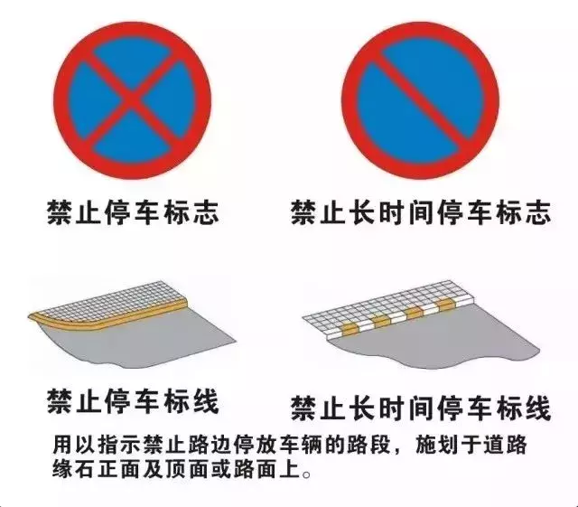 在有以下标志标线的路段停车,即使你打了双闪+人不离车,照样处罚。