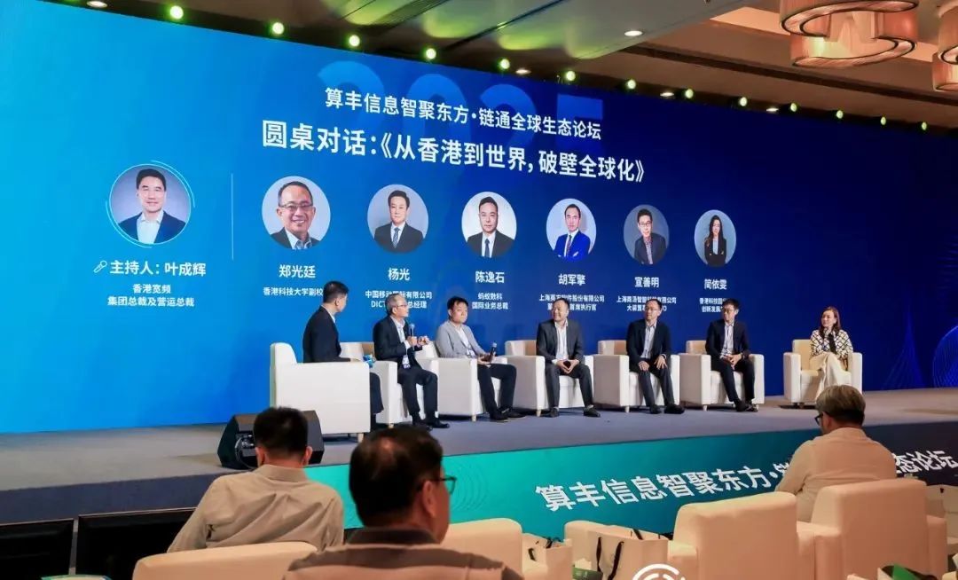 在香港宽频集团总裁及运营总裁叶成辉先生的主持下,与香港科技大学副校长郑光廷先生、中国移动国际有限公司DICT中心副总经理杨光先生、蚂蚁数科国际业务总裁陈逸石先生、上海商汤智能科技有限公司大装置事业群CTO宣善明先生、香港科技园公司创新发展总监简依雯女士等众多嘉宾,就相关话题展开精彩对话与交流。