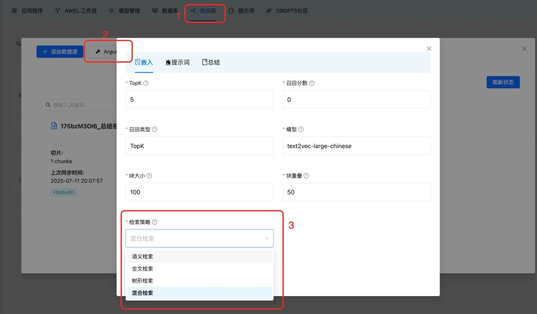 支持知识库自定义检索策略:语义检索、全文检索、树形检索、混合检索等