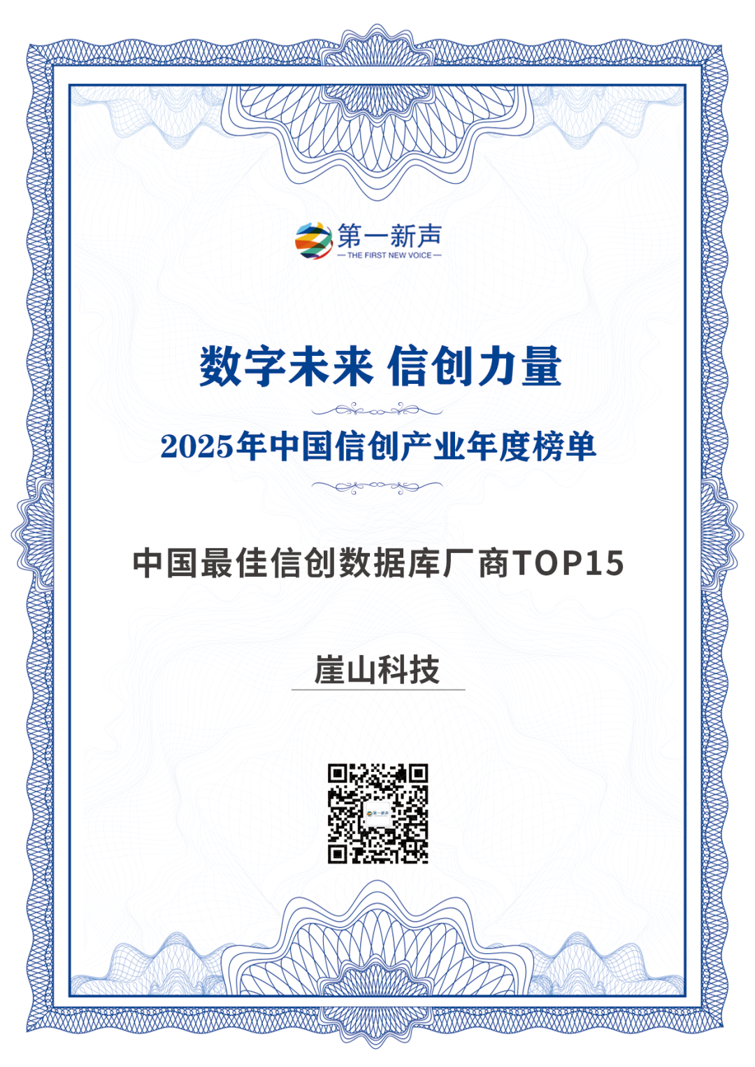近日,国内领先的科技产业信息服务平台「第一新声」正式发布了“2025年中国信创产业年度榜单”。崖山科技凭借其在信创领域的卓越实力与突出贡献,成功斩获“中国最佳信创厂商TOP50”及“中国最佳信创数据库厂商TOP15”两项重量级荣誉。同时,深圳计算科学研究院首席技术官、深圳崖山科技有限公司总裁陈志标,以其在推动国产数据库自主创新与信创实践中的先锋引领作用,荣登“中国信创产业先锋人物TOP30”榜单。这一系列殊荣,是对崖山科技核心技术突破和规模化替代路径创新的高度肯定。