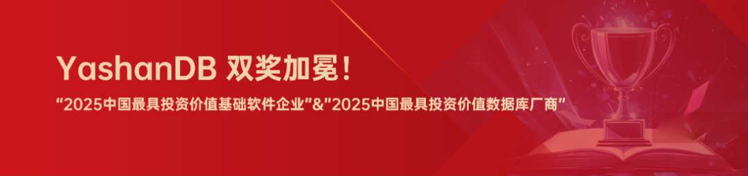 凭借在规模替代方面的市场表现,YashanDB一举登顶赛迪顾问“2025中国最具投资价值基础软件企业”及“2025中国最具投资价值数据库厂商”双榜榜首!
