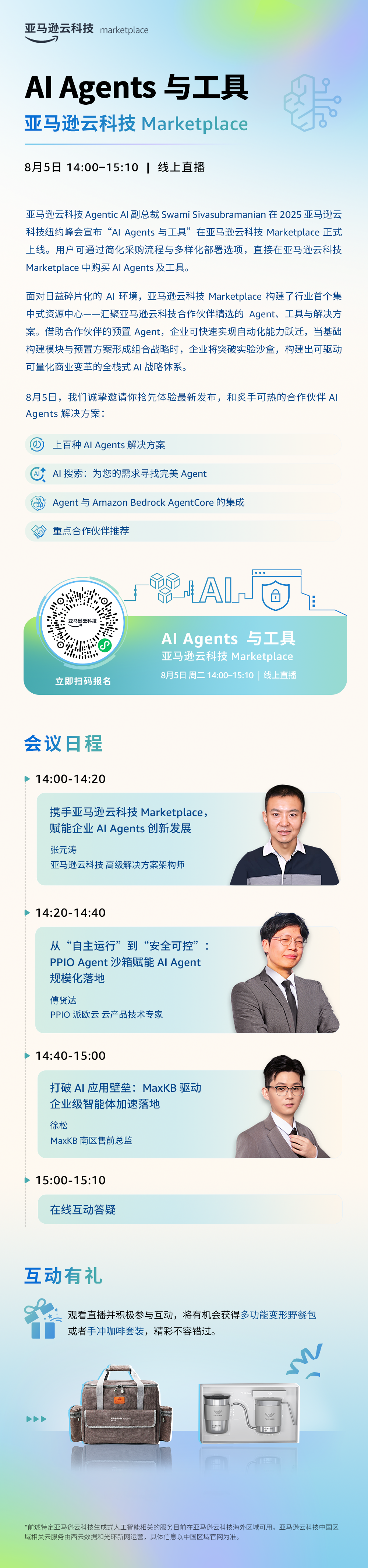 在2025年亚马逊云科技纽约峰会上,亚马逊云科技Agentic AI副总裁Swami Sivasubramanian宣布“AI Agents与工具”在亚马逊云科技Marketplace正式上线。用户可通过简化采购流程与多样化部署选项,直接在亚马逊云科技Marketplace中购买AI Agents及工具。