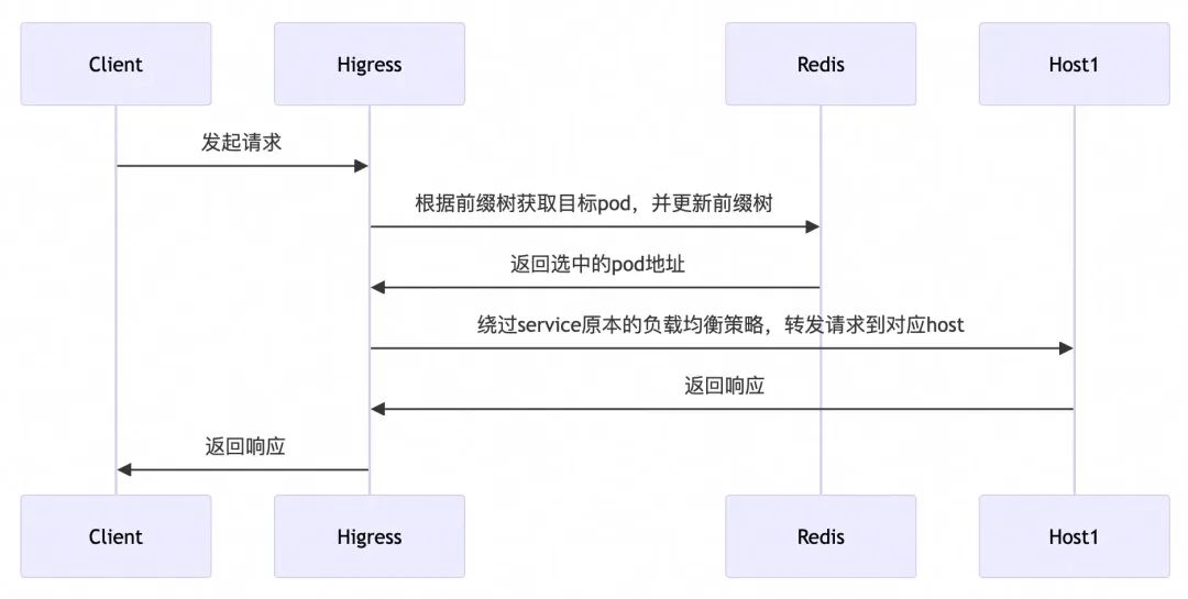 如果不存在,前缀匹配失败,步骤2中选出来的 pod 即为目标 pod,根据当前请求内容更新前缀树,pod 选取结束 如果存在,前缀匹配成功,pod 选取结束