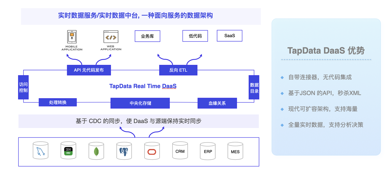 TapData 基于“增量数据驱动 + 数据建模 + 服务化输出”的架构,帮助企业快速搭建统一数据服务平台: